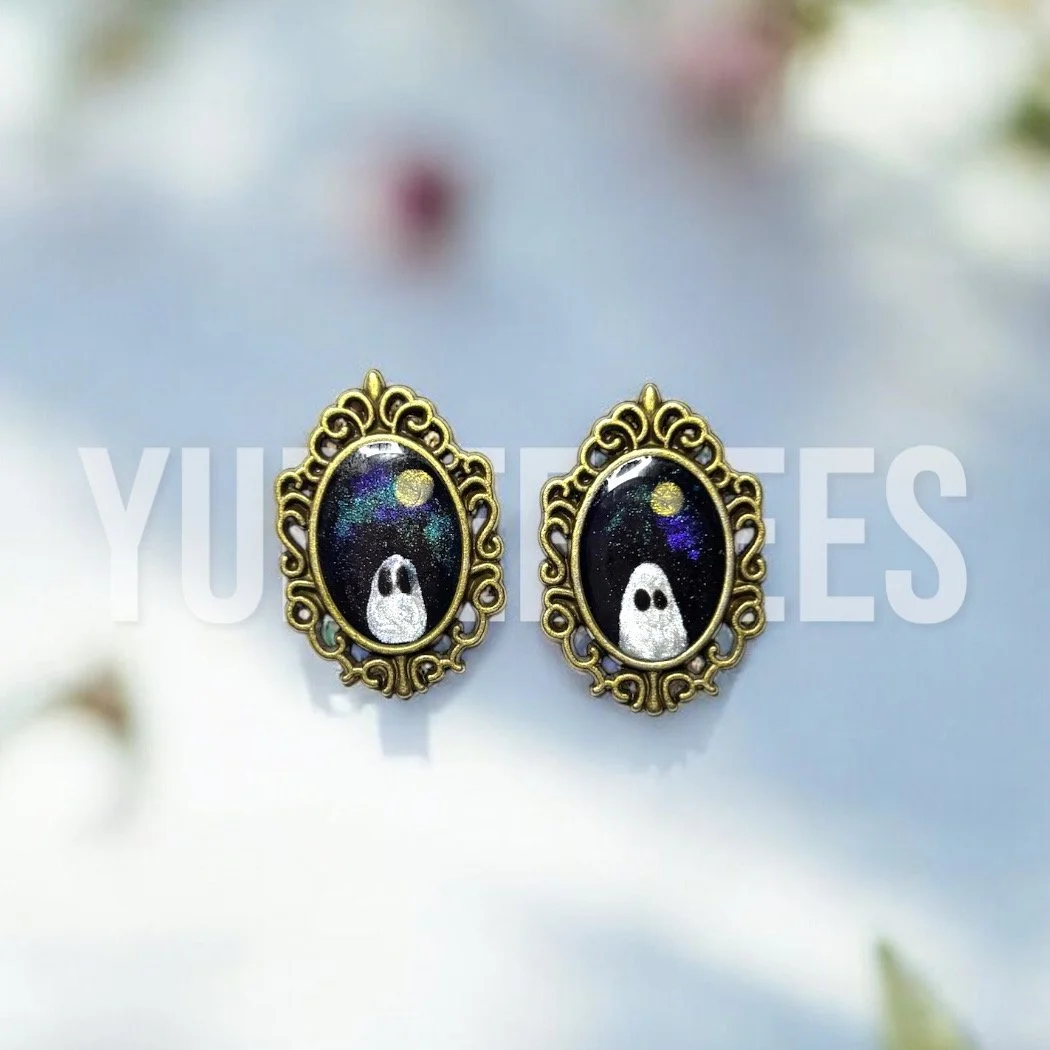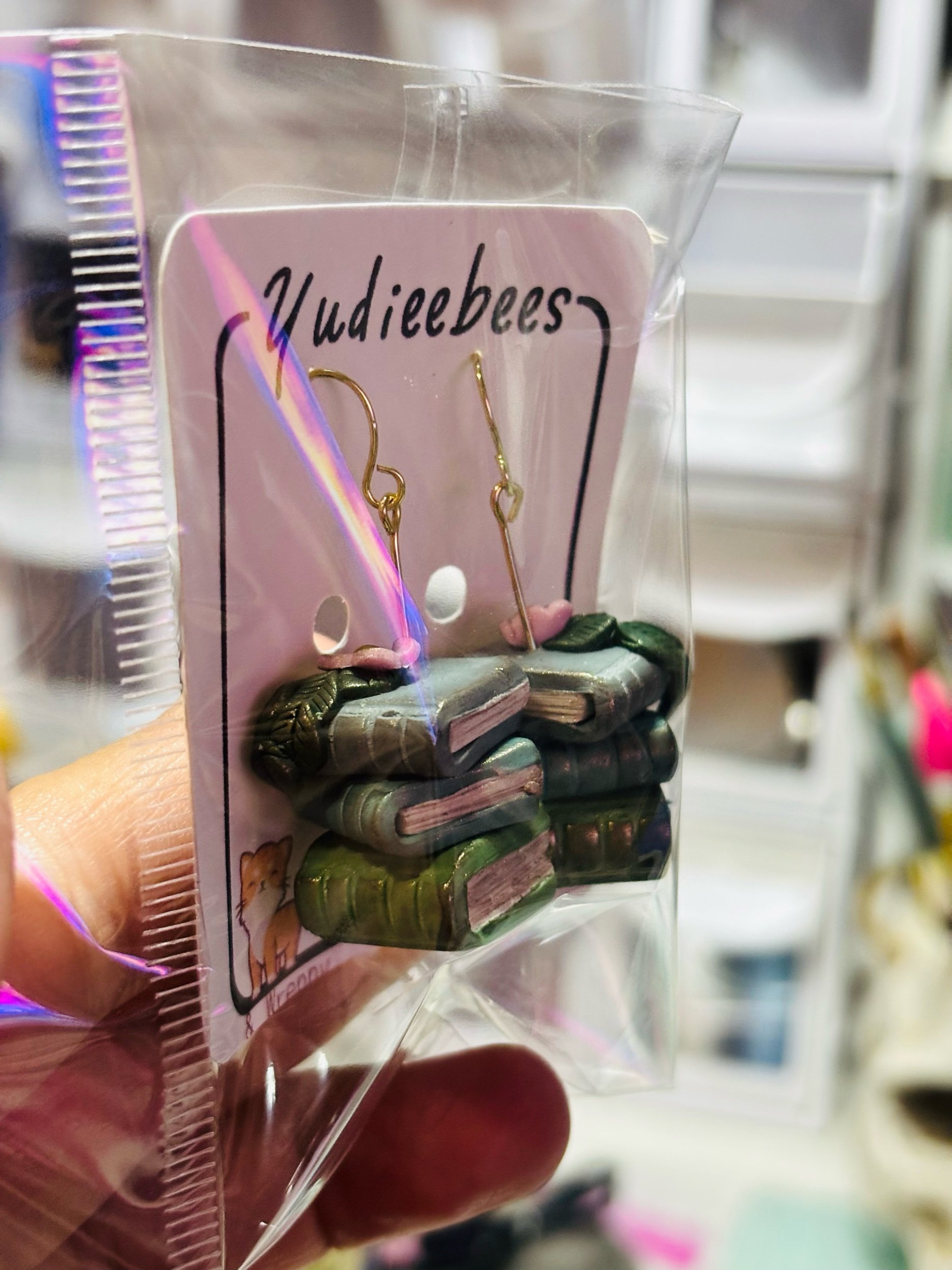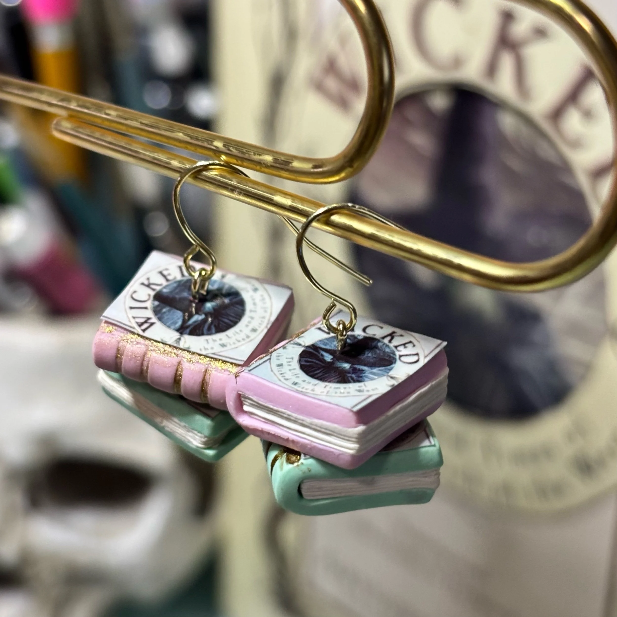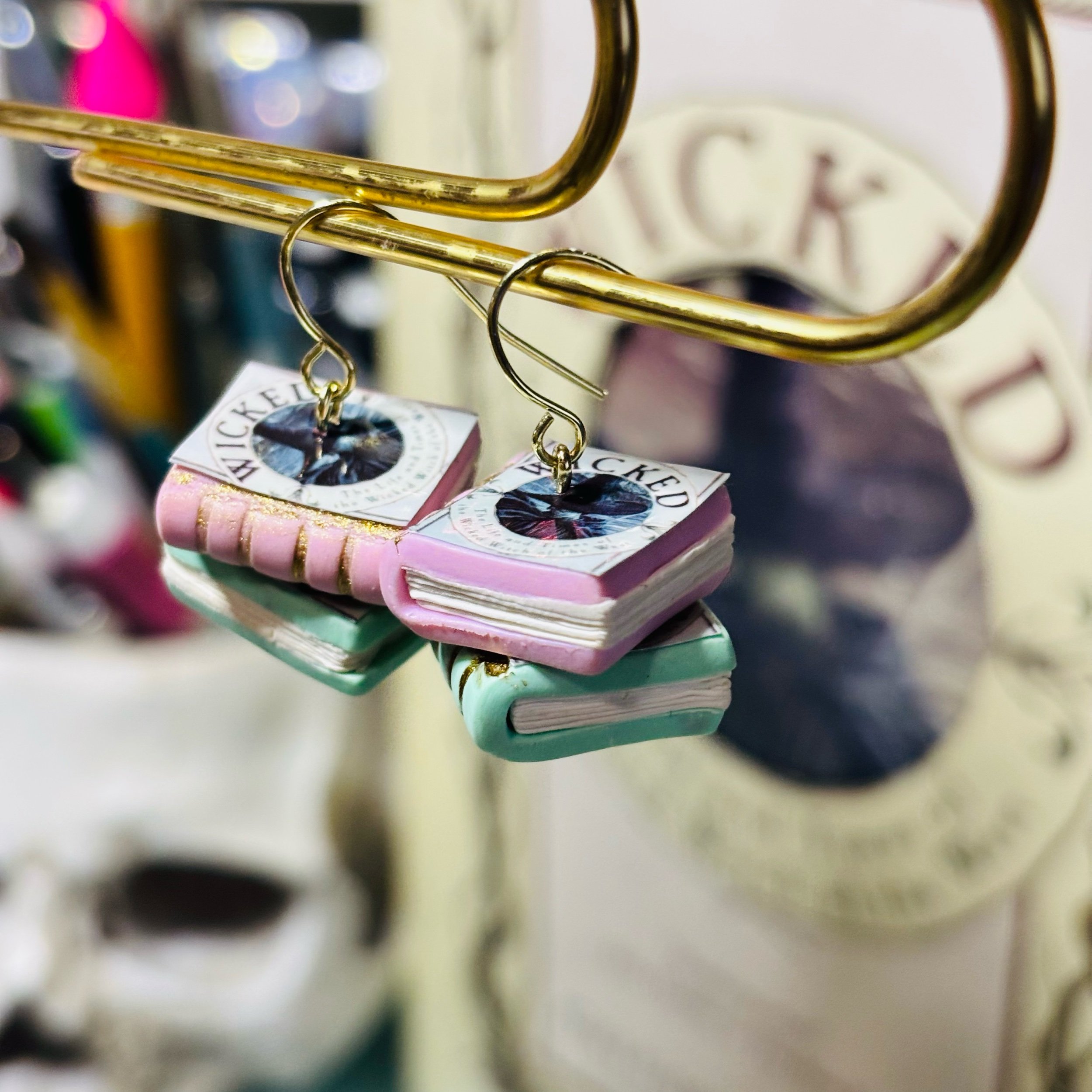 Earrings Categories: All Pocket Mirror Resin Clay jewelry Clay All | Pocket Mirror | Resin | Clay jewelry | Clay | Stacked wicked books earrings 3 tier books - Dusty Mini hand painted framed ghostie studs